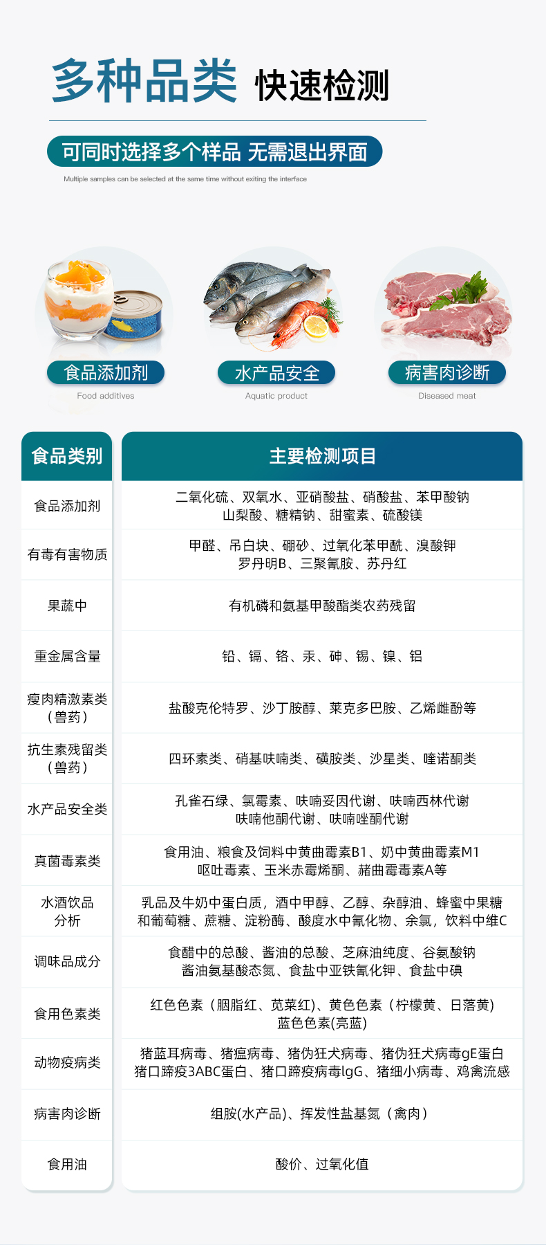 該多功能食品安全檢測儀為集成化食品安全快速檢測分析設(shè)備,廣泛應(yīng)用于食藥監(jiān)局、衛(wèi)生部門、高教院校、科研院所、農(nóng)業(yè)部門、養(yǎng)殖場、屠宰場、食品肉產(chǎn)品深加工企業(yè)、檢驗檢疫部門等單位使用。